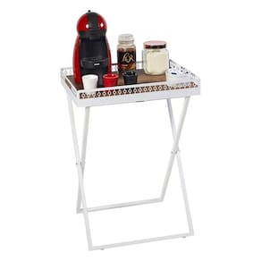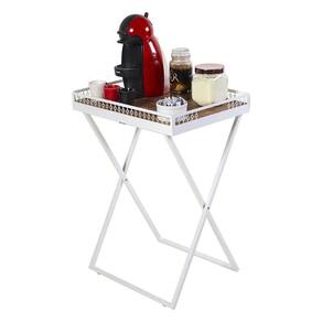 Mesinha dobrável para canto do café com bandeja branca O conjunto du gard é uma mesa dobrável com bandeja removível que inspira-se em proporções e traços graciosos que trazem um aspecto leve e uma simplicidade majestosa.
