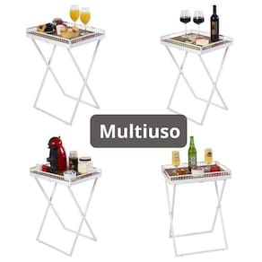 Bandeja removível podendo ser utilizada de forma separada para servir drinks no sofá, café da manhã na cama ou transportar pratos de forma segura.