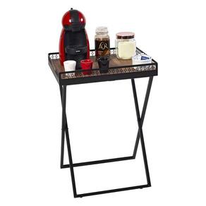 Especificações técnica Acabamento: pintura eletrostática epóxi Cor: preto fosco Material estrutura da base: tubo de aço 15x15mm com proteção anti-ferrugem Material da bandeja: aço com proteção anti-ferrugem e madeira. Requer montagem: não Peso suportado: 20kg