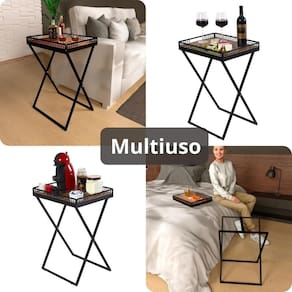 Bandeja removível podendo ser utilizada de forma separada para servir drinks no sofá, café da manhã na cama ou transportar pratos de forma segura.