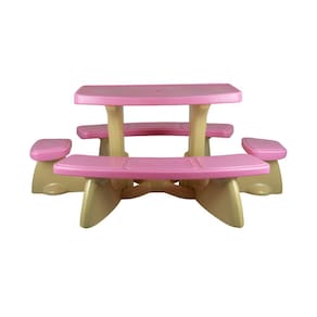 A Mesinha Pic-Nic de 8 Lugares Contém: 2 Bancos com 3 assentos cada; 2 Bancos, 1 em cada cabeceira; Ressaltos laterais no tampo da mesa; Furo central para instalação de guarda-sol (não fornecido).