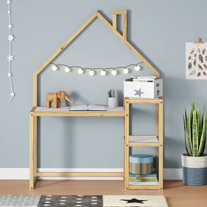 Design Montessoriano: Inspirada na filosofia Montessori, essa escrivaninha foi desenvolvida para oferecer um espaço de estudos e brincadeiras acessível, estimulando o desenvolvimento cognitivo e motor.