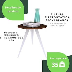 Querendo uma Mesinha de Canto Exclusiva e diferente do que há no mercado para você arrasar na decoração O grande charme são os traços de seus pés com estilo retrô, fabricados em aço resistente e durável, já que recebem uma camada de proteção contra ferrugem com acabamento de pintura eletrostática epóxi, para evidenciar o tampo de madeira.