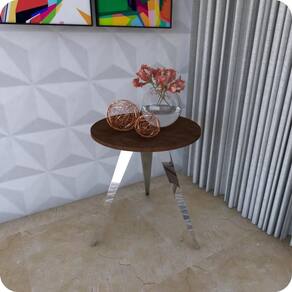 Querendo uma Mesinha de Canto Exclusiva e diferente do que há no mercado para você arrasar na decoração O grande charme são os traços de seus pés com estilo retrô, fabricados em aço resistente e durável, já que recebem um lindo acabamento cromado dando um Alto Brilho, para evidenciar o tampo de madeira.