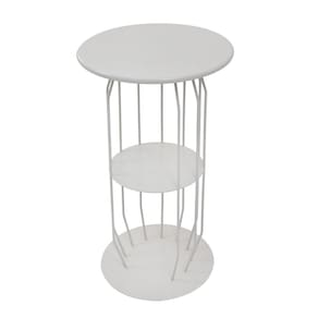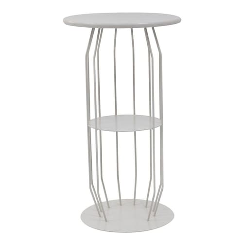 Mesinha Lateral Industrial Silueta Alta Redonda 35cm Cinza Claro