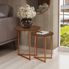 Jogo de Mesa Lateral e Apoio Jade Base Aço Cobre estilo industrial tampo MDF DTH Imports