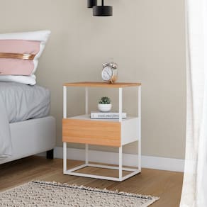 Mesinha Lucy 1 Gaveta Cabeceira Apoio Lateral Cama Sofa Branco/Damasco