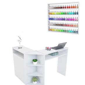 Nos trás orgulho apresentar nosso produto. Uma mesa de manicure é um móvel essencial em salões de beleza e espaços de cuidados pessoais, nossa mesa projetada para facilitar a realização de tratamentos de unhas. Ela é especialmente projetada para criar um ambiente confortável e funcional para manicures e pedicures. Aqui estão alguns elementos comuns encontrados em nossa mesa de manicure: