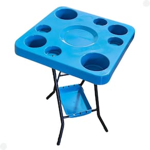 Piscina: Relaxar à beira da piscina é ainda mais agradável quando você tem uma mesa conveniente para acomodar bebidas, lanches e tudo o que precisa. Nossa mesa azul, com pés injetados, é resistente à umidade, ideal para complementar sua experiência de piscina.