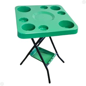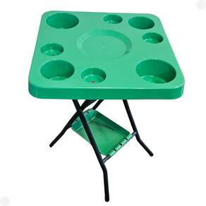 Piscina: Relaxar à beira da piscina é ainda mais agradável quando você tem uma mesa conveniente para acomodar bebidas, lanches e tudo o que precisa. Nossa mesa verde, com pés injetados, é resistente à umidade, ideal para complementar sua experiência de piscina.