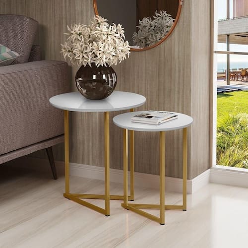 Jogo de Mesa Lateral e Apoio Jade Base Aço Cobre estilo industrial tampo MDF DTH Imports