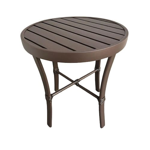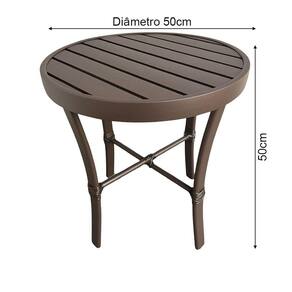 AS IMAGENS SÃO MERAMENTE ILUSTRATIVAS E PODEM SOFRER VARIAÇÕES DE COR E PEQUENOS DETALHES DE ACORDO COM O SEU MONITOR, ILUMINAÇÃO DO AMBIENTE E ATÉ MESMO A SUA PERCEPÇÃO VISUAL.Mesinha Ripada Redonda DiÃmetro De 0.50m AlumÃnio Marrom