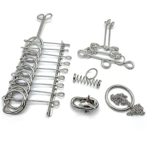 - 18 conjuntos de quebra-cabeças de metal de diferentes estilos, de fácil a difícil