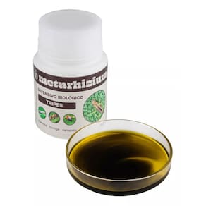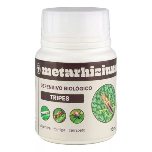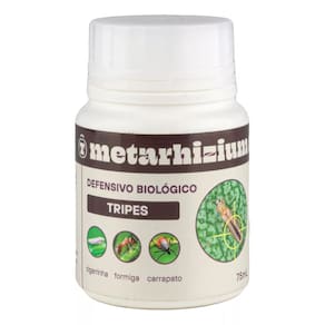 Bioinseticida e Biofungicida de controle microbiológico de fungos e pragas comuns no cultivo de plantas medicinais, ervas aromáticas, hortaliças, frutíferas, temperos entre outros.Ação eficaz contra:- Tripes- Cigarrinha- Formiga- Percevejo- Traça- CochonilhaAplicação:- Preventiva: 1 mL para cada litro de água. Aplicar 3x com intervalo de 7 dias.- Corretiva: 3 mL para cada litro de água. Aplicar 6x com intervalo de 4 dias.- Sempre aplicar no período noturno.- Via FOLIAR.Conservar na geladeira por 8 meses ou em temperatura ambiente por 6 meses após a data de fabricação (ver abaixo do frasco).Composição:Fungo em solução oleosa natural.Concentração: 1x10^9 UFC/mL.Volume 75 mililitro (mL).Agite antes de usar.Luta contra: Mahanarva fimbriolata, Zulia Entreriana, Deois Flavopicta, Scaptocoris Castanea, Frankliniella Schultzei, Planococcus Citri, Tuta absoluta, Atta e Acromyrmex, Rhipicephalus Microplus. Marca: Não Informado
