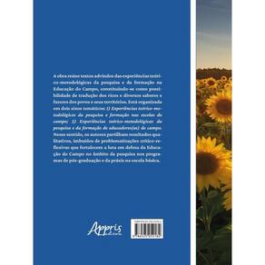 A obra reúne textos advindos das experiências teórico-metodológicas da pesquisa e da formação na Educação do Campo, constituindo-se como possibilidade de tradução dos ricos e diversos saberes e fazeres dos povos e seus territórios. Está organizada em dois eixos temáticos: 1) Experiências teórico-metodológicos da pesquisa e formação nas escolas do campo; 2) Experiências teórico-metodológicas da pesquisa e da formação de educadores(as) do campo. Nesse sentido, os autores partilham resultados qualitativos, imbuídos de problematizações crítico-reflexivas que fortalecem a luta em defesa da Educação do Campo no âmbito da pesquisa nos programas de pós-graduação e da práxis na escola básica.