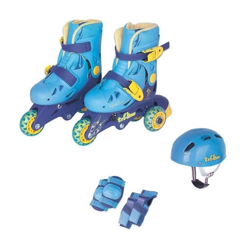 Patins 3 Rodas Tri-line Ajustável Com Acessórios Tl-01 Azul Patins Tri-Line Ajustáveis Com Acessórios é o patins ideal para os pequenos pois com seu sistema line, permite que o patins se torne in-line (3 rodas em linha) ou tri-line (duas rodas atrás e uma na frente). Fácil e bonito de usar, é resistente e super durável e ainda por cima com o sistema ajustável permite que um encaixe certinho no pé para uma melhor utilização do produto e ainda por cima acompanha o crescimento do pé da criança, permitindo com que o patins dure mais. Acompanha: Munhequeira, Cotoveleira, Joelheira e Capacete. Um patins super resistente com design moderno, confortável e com duas opções de montagem para você se divertir Especificações Técnicas: - Idade recomendada: A partir de 4 anos; - Material: Pp/Pu + Tecido + Espuma + Metal; - Acessórios 1 x Cotoveleira + Joelheira + Capacete + Munhequeira; - Peso Máximo Suportado: 70; - Marca: Fenix; - Cor: Azul; Dimensões aproximadas: - Produto: 28 x 10 x 26 cm (CxLxA); - Embalagem: 37 x 22 x 30 cm (CxLxA). - Selo Inmetro: Ce - Bri/Innac - 00003 - 000/Ocp 0061. Obs: Imagens Meramente Ilustrativas. Itens Inclusos: 01 Par de Patins Tri-line 01 Capacete 02 Joelheiras 02 Cotoveleiras
