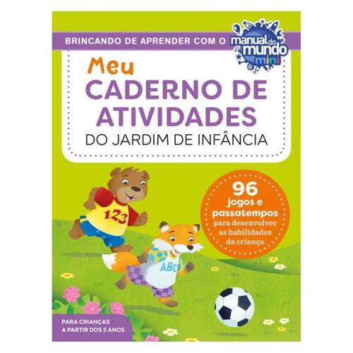 O MANUAL DO MUNDO APRESENTA UM JEITO MAIS DIVERTIDO DE APRENDER Repleto de desafios instigantes, Meu caderno de atividades do jardim de infância é uma ferramenta fantástica para as crianças aprenderem coisas novas. Elas vão adorar descobrir os caça-palavras, as palavras cruzadas, os quebra-cabeças e dezenas de outros jogos educativos e inteligentes que vão estimular sua curiosidade e sua criatividade. * Indicado para crianças a partir dos 5 anos. • UM FESTIVAL DE PASSATEMPOS: dê adeus à monotonia e se prepare para horas de diversão com quase uma centena de atividades! • EDUCATIVO E DIVERTIDO: veja a magia da descoberta nos olhos da criança à medida que ela vai vencendo desafios e adquirindo novos conhecimentos. • IDEAL PARA CRIANÇAS NO JARDIM DE INFÂNCIA: contribua para o aprendizado dos pequenos de maneira lúdica, com atividades especialmente elaboradas para aprofundar o que eles já estão vendo na escola. LEITURA • NOÇÕES DE MATEMÁTICA • CIÊNCIAS • ESTUDOS SOCIAIS • E MUITO MAIS! "Com a missão de ensinar de forma clara, atraente e divertida, o Manual do Mundo é o maior canal de Ciência e Tecnologia em língua portuguesa, contando com mais de 13 milhões de inscritos no YouTube. Não importa o assunto, nosso principal objetivo é disseminar conhecimento e estimular a criatividade e a curiosidade de crianças e adultos. Motivados pelo desejo de encantar e entreter crianças menores, apresentamos este divertido livro para despertar o interesse delas pelo fascinante universo das letras, dos números, das ciências e muito mais. Este é o ponto de partida perfeito para a jornada de aprendizado e descoberta de uma vida inteira. Boa diversão! " - Iberê Thenório & Mari Fulfaro