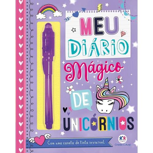 Meu diário mágico unicórnios: com caneta especial - cultural cultural Guarde seus segredos neste diário especial. Escreva com a caneta de tinta invisível que só aparece quando você ilumina as paginas com a luz magica da tampa da caneta