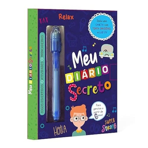 O meu diário secreto + caneta mágica, é um diário descolocado e estiloso para garotos guardare os seus segredos, desejos, sonhos e todos os seus pensamentos interessantes. O mais legal é que você só consegue ler o que está escrito com a luz da caneta mágica, assim você pode escrever coisas marcantes, fazer listas, escrever poemas e até os seus segredos. Colecione recados de amigas, cole fotos e faça montagens!