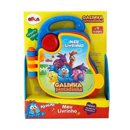 Meu livrinho Galinha Pintadinha da marca Elka toca musica com apenas um botão. A diversão não vai ter hora para acabar. Ajuda no desenvolvimento da criançada.
