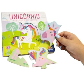 Um livro interativo para desenvolver as habilidades cognitivas de forma lúdica montando divertidos quebra-cabeças de unicórnio.