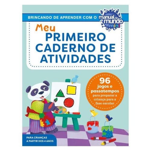 O MANUAL DO MUNDO VAI DESPERTAR NOS PEQUENOS A VONTADE DE APRENDER! 96 jogos e passatempos para preparar a criança para a fase escolar. * Indicado para crianças a partir dos 4 anos. Com muitos desafios divertidos, Meu primeiro caderno de atividades é uma ferramenta fantástica para as crianças desenvolverem as habilidades necessárias ao início de sua jornada escolar. Elas vão adorar ligar os pontos, combinar figuras, descobrir as formas geométricas e completar dezenas de outros jogos educativos e inteligentes que vão estimular sua curiosi- dade e sua criatividade. • UM FESTIVAL DE PASSATEMPOS: dê adeus à monotonia e se prepare para horas de alegria com quase uma centena de atividades! • EDUCATIVO E DIVERTIDO: veja a magia da descoberta nos olhos da criança à medida que ela vai vencendo desafios e adquirindo conhecimento. • IDEAL PARA CRIANÇAS PEQUENAS: dê o pontapé inicial no processo de aprendizado dos pequenos, com atividades especialmente desenvolvidas para prepará-los para o jardim de infância. CORES • LETRAS • NÚMEROS • FORMAS • PADRÕES • E MUITO MAIS!