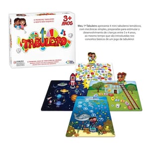 Meu Primeiro Tabuleiro apresenta 4 mini tabuleiros temáticos, com mecânicas simples, preparadas para estimular o desenvolvimento de crianças entre 3 e 4 anos, ao mesmo tempo que são introduzidas nos conceitos básicos de um jogo de tabuleiro.