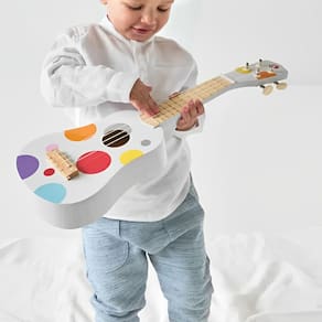 O Violão Infantil Confetti é um instrumento de madeira projetado para crianças a partir dos 3 anos. Este violão é um convite para os pequenos músicos explorarem o mundo da música e criar seu próprio show. Com 4 cordas de nylon, um design colorido e fazendo parte da nossa gama Confetti, este violão é perfeito para despertar a paixão pela música e proporcionar uma experiência sensorial rica.