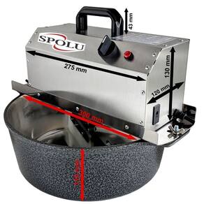 Mexedor Elétrico 8L SPL408 Spolu. Ideal para padarias, confeitarias, cozinhas industriais e similares. Sua função é misturar e mexer doces e salgados como: brigadeiro, beijinho, polenta e afins. Garantindo a mistura uniforme e consistente, tornando o preparo de receitas mais rápido e profissional. Seu cabeçote é em aço inox, com cabo anatômico em material anti chamas. A panela em alumínio fundido e pintura externa eletrostática que proporcionam durabilidade, higiene e facilidade na limpeza. Suas pás mexedoras são em silicone alimentício e a estrutura em aço inox de 2,5 mm. CAPACIDADE: 8L. POTÊNCIA:25W. PÁS: Silicone. TENSÃO: Bivolt. PESO: 6,5kg. DIMENSÕES(CxAxL): 39,5x33x30cm. Mexedor Elétrico 8L SPL408 Spolu é na Atau.
