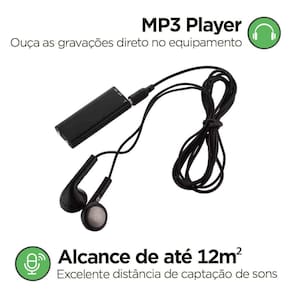 Este Gravador é ideal para quem necessita gravar áudios, sejam músicas à conversas. Sua captação de voz chega em um raio de até 12 metros².