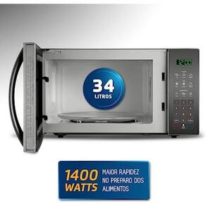 Micro-ondas com espaço interno de 34 litros, suficiente para atender toda a família.