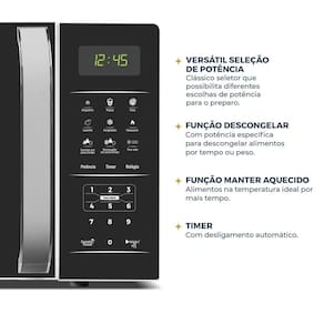 Micro-ondas Britânia 20L com 1100W de potência, pintura Limpa Fácil, função tira-odor, receitas pré-programadas, função +30 segundos e classificação energética A.Função Grill