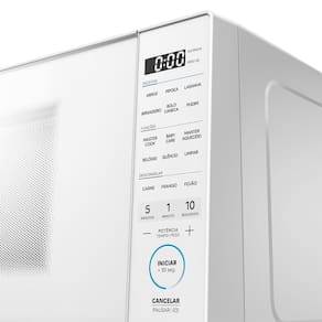 O Micro-ondas 27L MasterCook Midea é a solução perfeita para quem busca eficiência, versatilidade e praticidade. Sua Função MasterCook oferece 6 funções para facilitar sua rotina: desidratar, cozinhar, assar, ao vapor, derreter e fermentar. Além disso, seu interior conta com o exclusivo revestimento MasterClean, que por meio de uma cavidade escura, evita o acúmulo de gordura e torna a limpeza do micro-ondas muito mais fácil e rápida. Com design moderno, possui puxador embutido com acabamento discreto que une estilo e funcionalidade. Oferece 6 receitas pré-programadas, como pipoca, arroz, brigadeiro, bolo de caneca, lasanha e pudim com apenas um toque e 10 níveis de potência para ajustar conforme o tipo de alimento e o resultado desejado. A Tecnologia Smart Plate garante que o prato giratório retorne automaticamente as alças de xícaras e canecas à posição inicial, tornando a retirada dos itens muito mais prática e segura. O aparelho ainda oferece a função descongelar por tempo para carne, frango e feijão, que garante eficiência sem riscos de cozimento parcial, a função manter aquecido, que preserva a temperatura por até 5 minutos em potência baixa e a função limpa fácil, que derrete a gordura interna e simplifica a higienização. Ideal para famílias ou quem busca mais espaço interno, o Micro-ondas 27L MasterCook Midea une tecnologia, praticidade e design para transformar sua rotina na cozinha. ATENÇÃO: ESTA LOJA NÃO FATURA PARA CNPJ.