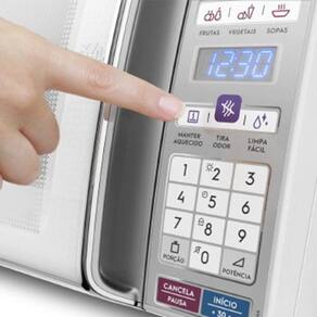 Micro-ondas 34l electrolux - meo44 Cor: branco - voltagem: 110 volts Micro-ondas electrolux meo44 34 litros Características: Puxador semi-embutido: mais robustez e elegância para o seu micro-ondas. Display centralizado: display na cor azul, inovador, muito mais bonito e moderno. Menu light: receitas mais saudáveis como vegetais, sopas e frutas. Menu dia a dia: prepare as receitas mais usadas como arroz, macarrão e batata. Menu kids: as receitas favoritas das crianças em um toque: bolo de caneca, pipoca e brigadeiro. Desliga display: economia de energia. Desligue o painel digital quando terminar de usar o aparelho. Função trava painel: tecla que permite travar o acionamento do aparelho. Função mudo: aperte a tecla 0 por 4 segundos e o som do bip desaparece. Tecla início/ +30s: seu micro-ondas funcionando em um toque. Programação de tempo rápida e descomplicada. Tecla porção: escolha a quantidade do alimento para cozimento. 10 níveis de potência: diversos ajustes de potência para cozinhar diferentes receitas. Menu descongelar: descongela carne, frango, peixe e feijão. 34 litros de capacidade: maior capacidade para o preparo das suas receitas. Função tira odor: minimiza odores internos do microondas, mantendo-o sempre limpo. Função limpa: fácil seu micro-ondas sempre limpo em apenas um toque. Função manter: aquecido suas receitas no tempo e na temperatura certa. Qr code: vídeos com o modo de preparo das receitas do menu. Dimensões: Altura: 30 cm Largura: 53,9 cm Profundidade: 42,4 cm Diâmetro do prato: 32 Peso: 16 kg Garantia do fornecedor de 12 meses.