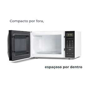 Micro-ondas Britânia 20L com 1100W de potência, funções de receitas pré-programadas, função +30 segundos, pintura limpa fácil e função tira-odor.Função Grill