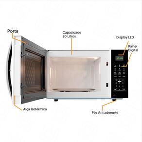 Com teclas fáceis de usar, trava de segurança e capacidade de 20L, esse micro-ondas é perfeito para famílias e pessoas que buscam agilidade sem abrir mão do estilo. Adquira já o seu e leve mais conveniência para sua rotina!