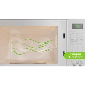 Especificicações técnias: Tipo de produto: Bancada Método de Preparo: 1 Nível de Potência: 10 Tipo de Painel: Digital (Membrana) Trava de Segurança Tipo de Display: Led Tecnologia: Com prato giratório Capacidade Volume Útil: 21 Litros Função Descongelar Menu Fácil Função Tira Odor Ajuste fácil de potência Função Silencioso As 6 receitas mais usadas no dia-a-dia estão à apenas um toque no painel. Escolha o tipo de preparo e o micro-ondas faz o resto. Bem pensado é descomplicar a limpeza da sua cozinha. Com a função Tira Odor, chega de cheiro de comida no micro-ondas. Com apenas um toque, o micro-ondas Consul descongela diversos tipos de alimentos (de feijão a carnes), agilizando o preparo da sua receita e diminuindo a sujeira na cozinha.