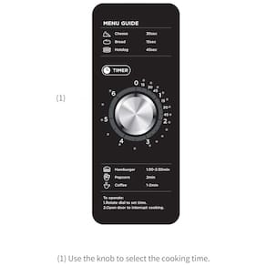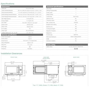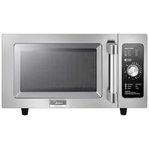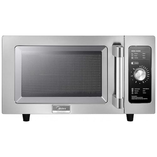 Capacidade média 0,9 cu. ft., 25 L, acomoda um prato de 30 centimetros Luz da cavidade do forno para monitorar o status de cozimento sem abrir a porta. Capaz de suportar as demandas do ambiente de serviço de alimentação com gabinete de aço inoxidável e cavidade do forno Maçaneta da porta EZ Grabn Go para uso confiável, sem partes móveis. 1000 Watts de potência de cozimento distribuídos por um único magnetron com uma antena rotativa inferior. Fácil de controlar com temporizador de discagem eletrônica de 6 minutos com dígitos iluminados e um recurso Auto Reset Potência total apenas para operação simples. Guia de menu na porta para itens s com frequência e referência