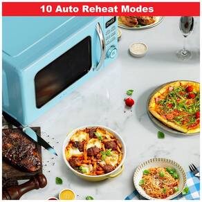 DESCONGELAÇÃO E INÍCIO RÁPIDO Descongele qualquer um dos seus alimentos congelados por peso ou tempo Também inclui um botão de início rápido de 30 segundos para quando você precisar de mais tempo de cozimento para sua refeição. AUTO COOK REHEAT Inclui 7 programas de cozimento automático e 10 programas de reaquecimento automático, tornando simples, rápido, fácil e conveniente cozinhar e reaquecer refeições e bebidas FÁCIL DE LIMPAR COM MESA GIRATÓRIA DE VIDRO Removível para facilitar a limpeza, inclui uma mesa giratória de vidro de 30 centimetros que gira 360 graus para um cozimento uniforme e eficiente. VISUAL RETRO O visual vintage e retrô acentuará qualquer espaço Misture e combine com os outros aparelhos retrô da Galanz, como a torradeira, o freezer e as peças de refrigeração. IDEAL PARA ESPAÇOS PEQUENOS O tamanho compacto é perfeito para apartamentos, cozinhas, dormitórios e outros pequenos espaços de cozinha Mede 53x40x27 centimetros com capacidade de 31L