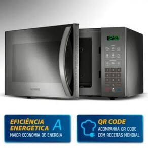 Características: Marca: Mondial Modelo: MO-02-34-E Tipo: Micro-ondas de bancada Capacidade: 34 litros Níveis de potência: 10 níveis Timer: Sim Display: Sim Relógio: Sim Luz interna: Sim Prato giratório: Sim Menu de receitas: Sim Tecla descongelar: Sim Desodorizador: Sim Funções: Tira odor, descongelar, manter aquecido, menu dia a dia/menu kids e função relógio Potência: 1400 W Consumo: 1,4Kw/h
