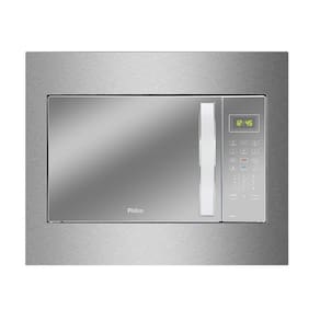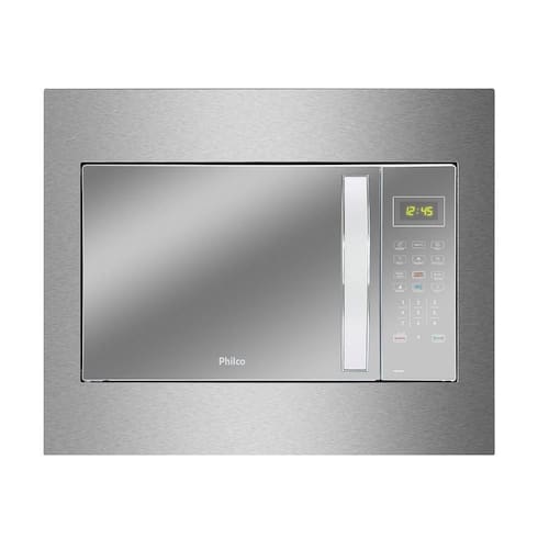 Micro-ondas de embutir Philco com capacidade de 37 litros, 1400W de potência, porta espelhada, teclas fáceis (FIT e Manter Aquecido), funções Descongelar Rápido/Peso, Relógio e Tira odor. Classe A em eficiência energética.Função Grill