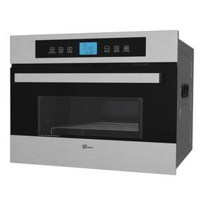 Micro-ondas de embutir Fischer Platinium 35L com acabamento em aço inox escovado, painel touch screen, sistema flat plate (sem prato giratório) e grill dourador.Função Grill