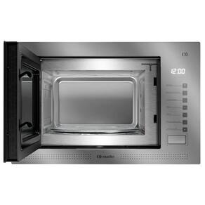 Micro-ondas de embutir, 25 litros, 1450W de potência total, 900W de potência micro-ondas, 5 níveis de potência, painel digital com controle por toque, função descongelar por tempo ou peso, timer com relógio e aviso sonoro, luz interna, Grill dourador com grade, trava de segurança.Função Grill