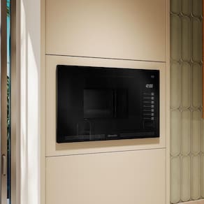 Capacidade ideal para famílias, com total de 1450 W de potência, painel digital touch com cinco níveis, função descongelar por peso ou tempo, oito receitas pré-programadas, +30 s de atalho, interior em inox durável, acabamento sofisticado em vidro espelhado preto praticidade e estilo para sua cozinha planejada.