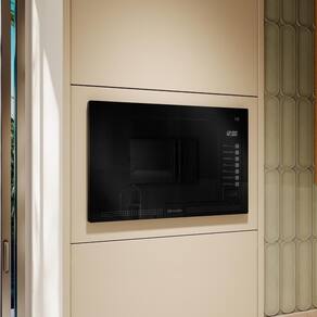Capacidade ideal para famílias, com total de 1450 W de potência, painel digital touch com cinco níveis, função descongelar por peso ou tempo, oito receitas pré-programadas, +30 s de atalho, interior em inox durável, acabamento sofisticado em vidro espelhado preto praticidade e estilo para sua cozinha planejada.