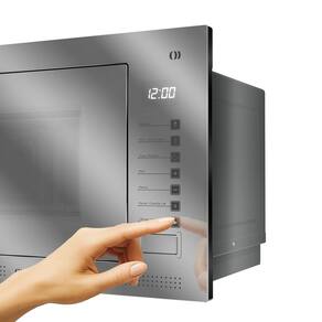 Micro-ondas de Embutir Mueller 25 Litros Preto MME25K 220V. Possui Grill dourador com grade, 8 opções de auto menu, função descongelamento, luz interior, 5 níveis de potência, relógio, timer com aviso sonoro, display digital e painel touch screen. Acompanha sistema de ventilação interna e moldura com saída de ar integrada. Trava de segurança.Função Grill