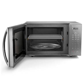 Micro-ondas Panasonic 27 litros com design sofisticado, painel moderno, revestimento antiaderente, sistema antibactéria Ag, função Dupla Refeição, Pega Fácil e eficiência energética A.Função Grill