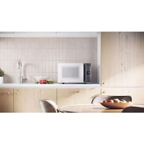 Micro-ondas Electrolux Efficient 23L com funções de Descongelar, Receitas pré-programadas, Autolimpeza, Manter Aquecido, Função tira odor, Função mudo e Trava do painel. Painel inteligente com funções Derreter, Desidratar, Cozinhar Delicado e Cozinhar Rápido.Função Grill