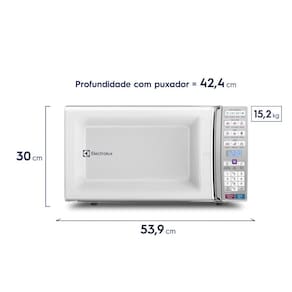 Características: Puxador semi-embutido: Mais robustez e elegância para o seu Micro-ondas. Display centralizado: Display na cor azul, inovador, muito mais bonito e moderno. Menu Light: Receitas mais saudáveis como vegetais, sopas e frutas. Menu Dia a Dia: Prepare as receitas mais utilizadas como arroz, macarrão e batata. Menu Kids: As receitas favoritas das crianças em um toque: bolo de caneca, pipoca e brigadeiro. Desliga Display: Economia de energia. Desligue o painel digital quando terminar de usar o aparelho. Função Trava Painel: Tecla que permite travar o acionamento do aparelho. Função Mudo: Aperte a tecla 0 por 4 segundos e o som do bip desaparece. Tecla Início/ +30s: Seu Micro-ondas funcionando em um toque. Programação de tempo rápida e descomplicada. Tecla Porção: Escolha a quantidade do alimento para cozimento. 10 níveis de potência: Diversos ajustes de potência para cozinhar diferentes receitas. Menu Descongelar: Descongela carne, frango, peixe e feijão. 34 litros de capacidade: Maior capacidade para o preparo das suas receitas. Função Tira Odor: Minimiza odores internos do Microondas, mantendo-o sempre limpo. Função Limpa: Fácil Seu Micro-ondas sempre limpo em apenas um toque. Função Manter: Aquecido Suas receitas no tempo e na temperatura certa. QR Code: Vídeos com o modo de preparo das receitas do menu.