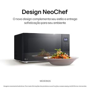 O Micro-ondas LG NeoChef com 30 litros, é ideal para quem busca praticidade e eficiência. Ele possui tecla limpa fácil, cozimento perfeito e receitas pré-programadas tudo para facilitar na hora do preparo de seus alimentos. Além disso, ele conta com o design NeoChef, deixando sua cozinha ainda mais sofisticada.
